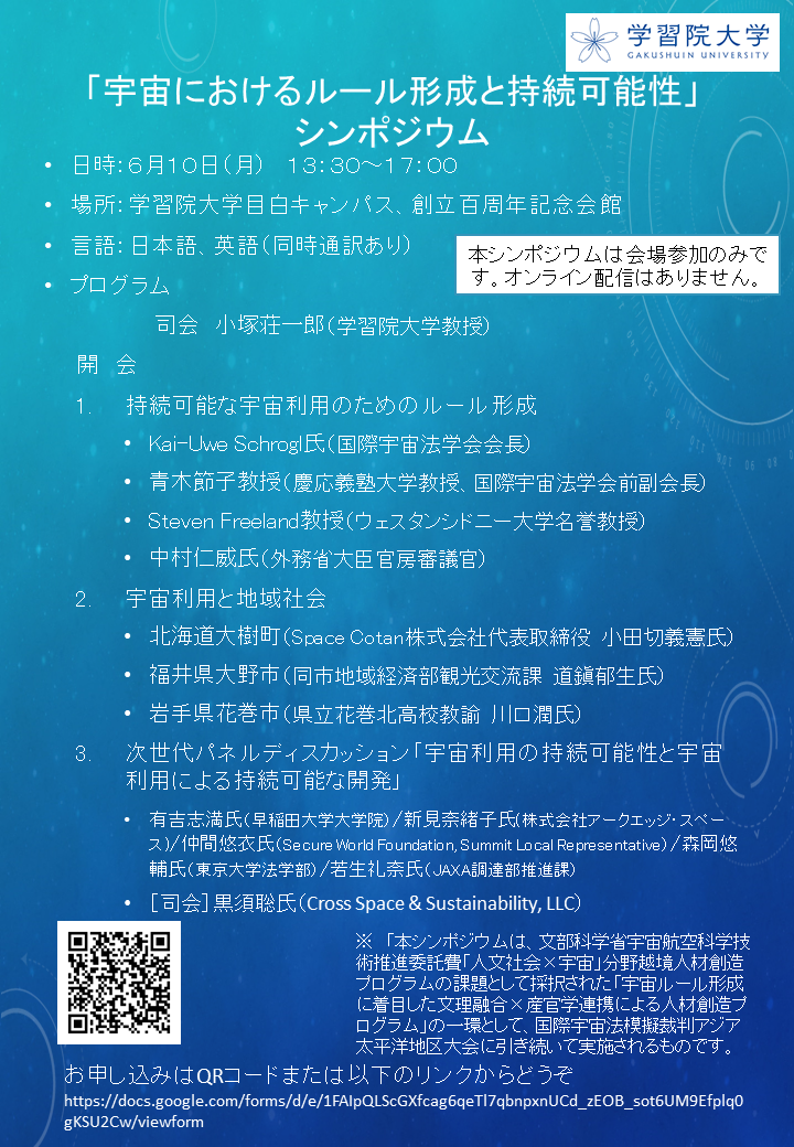 「宇宙におけるルール形成と持続可能性」シンポジウム